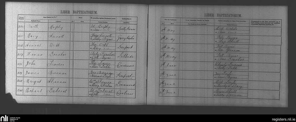 Clonegal; County of Wicklow, Carlow, Wexford; Diocese of Kildare and Leighlin. Baptisms, May 1845 to June 1845