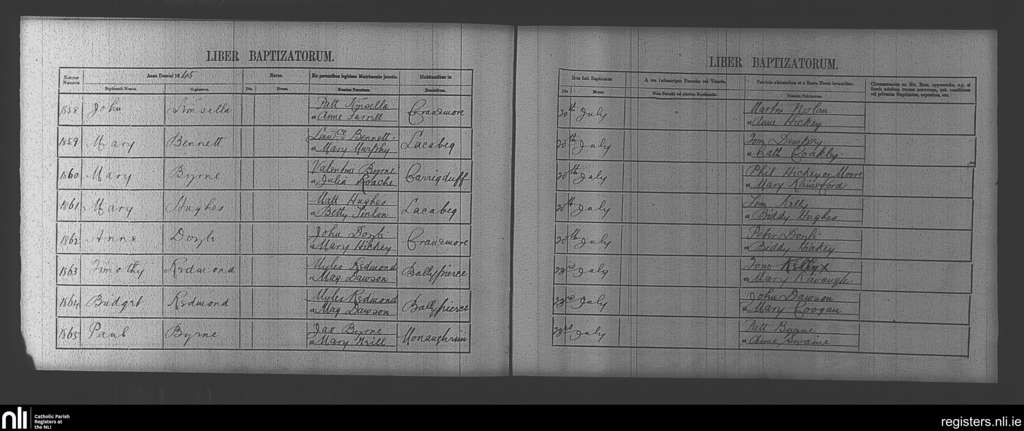 Clonegal; County of Wicklow, Carlow, Wexford; Diocese of Kildare and Leighlin. Baptisms, July 1845