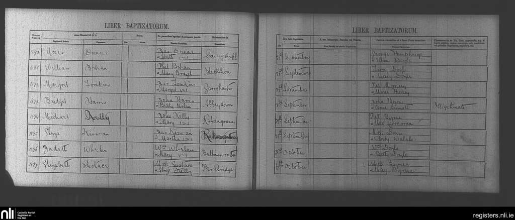 Clonegal; County of Wicklow, Carlow, Wexford; Diocese of Kildare and Leighlin. Baptisms, Sep. 1845 to Oct. 1845