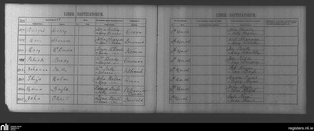 Clonegal; County of Wicklow, Carlow, Wexford; Diocese of Kildare and Leighlin. Baptisms, Mar. 1846
