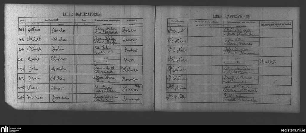 Clonegal; County of Wicklow, Carlow, Wexford; Diocese of Kildare and Leighlin. Baptisms, Aug. 1846 to Sep. 1846
