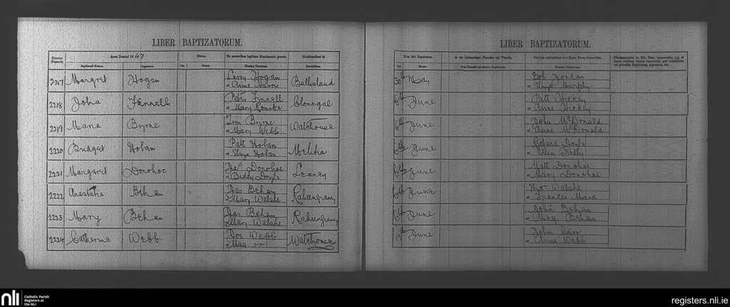 Clonegal; County of Wicklow, Carlow, Wexford; Diocese of Kildare and Leighlin. Baptisms, May 1847 to June 1847