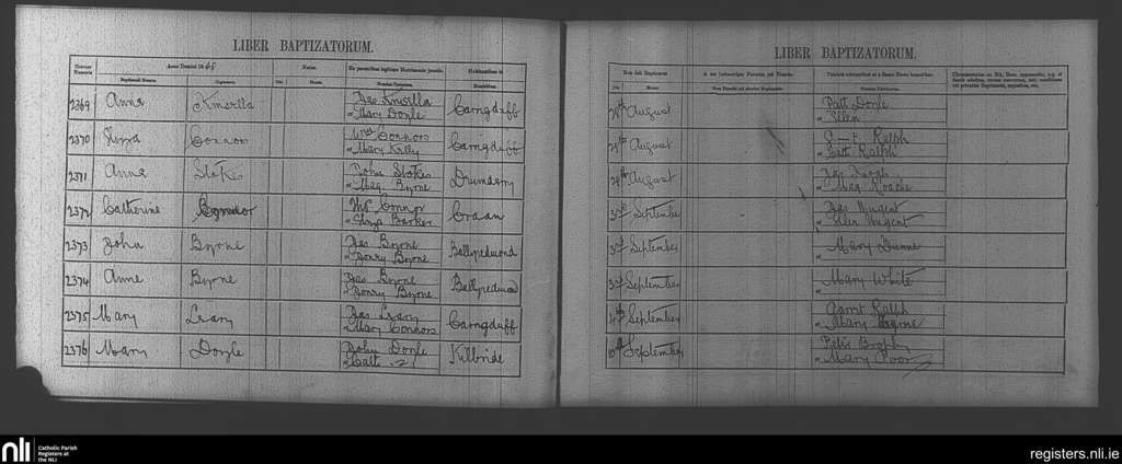 Clonegal; County of Wicklow, Carlow, Wexford; Diocese of Kildare and Leighlin. Baptisms, Aug. 1848 to Sep. 1848