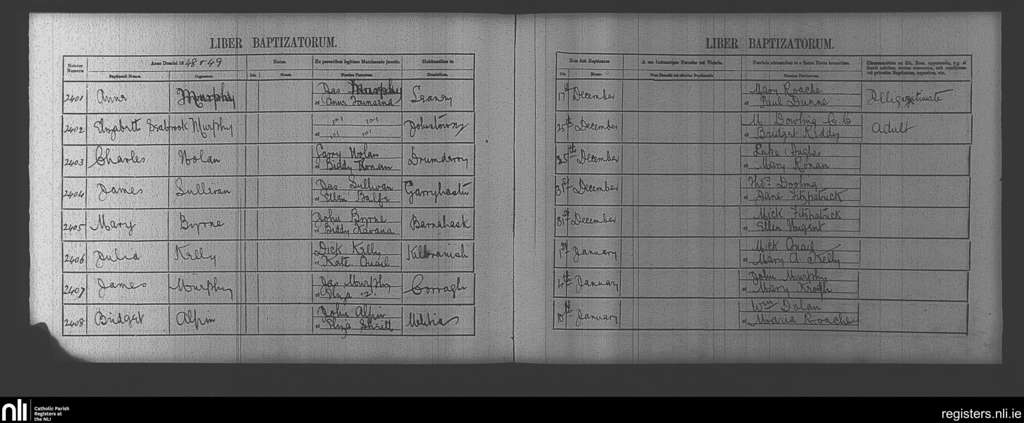 Clonegal; County of Wicklow, Carlow, Wexford; Diocese of Kildare and Leighlin. Baptisms, Dec. 1848 to Jan. 1849