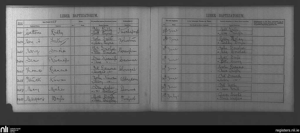 Clonegal; County of Wicklow, Carlow, Wexford; Diocese of Kildare and Leighlin. Baptisms, June 1849 to July 1849