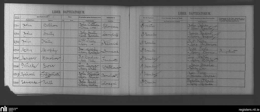 Clonegal; County of Wicklow, Carlow, Wexford; Diocese of Kildare and Leighlin. Baptisms, Oct. 1851 to Dec. 1851