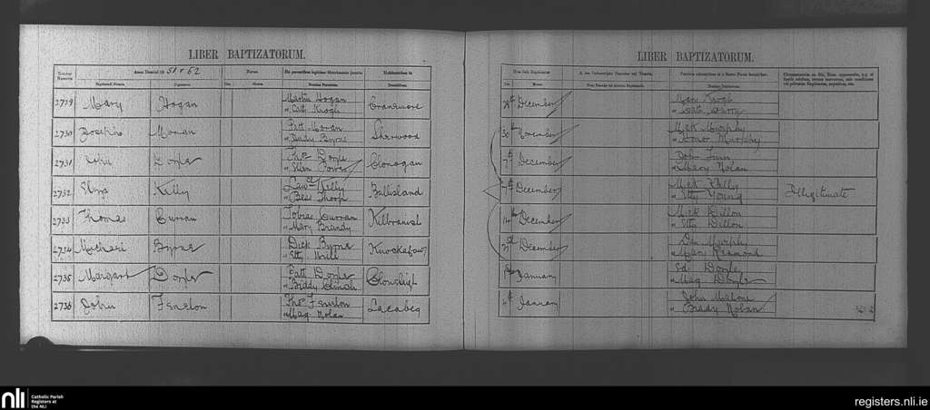 Clonegal; County of Wicklow, Carlow, Wexford; Diocese of Kildare and Leighlin. Baptisms, Nov. 1851 to Jan. 1852
