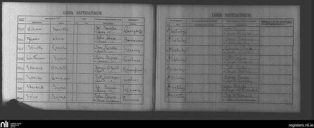 Clonegal; County of Wicklow, Carlow, Wexford; Diocese of Kildare and Leighlin. Baptisms, Sep. 1854 to Oct. 1854