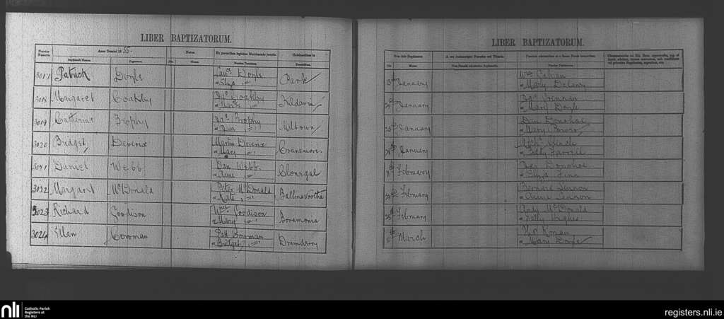 Clonegal; County of Wicklow, Carlow, Wexford; Diocese of Kildare and Leighlin. Baptisms, Jan. 1855 to Mar. 1855