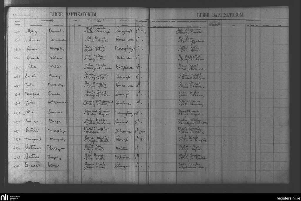 Clonegal; County of Wicklow, Carlow, Wexford; Diocese of Kildare and Leighlin. Baptisms, May 1869 to June 1869