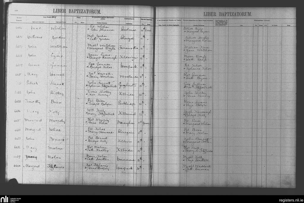 Clonegal; County of Wicklow, Carlow, Wexford; Diocese of Kildare and Leighlin. Baptisms, Dec. 1869 to Jan. 1870