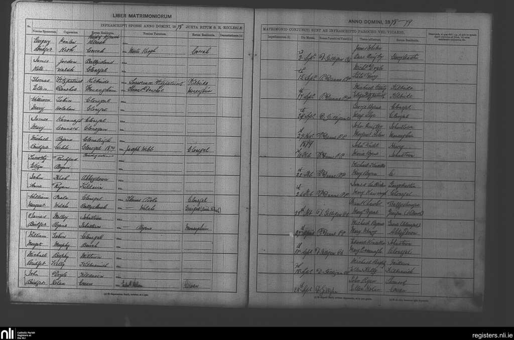 Clonegal; County of Wicklow, Carlow, Wexford; Diocese of Kildare and Leighlin. Marriages, Sep. 1878 to Sep. 1879