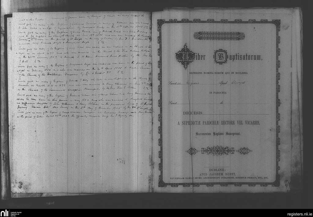 Clonegal; County of Wicklow, Carlow, Wexford; Diocese of Kildare and Leighlin. Baptisms