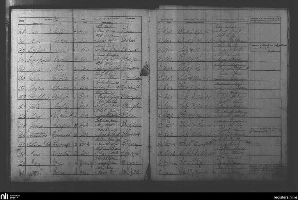 Clonegal; County of Wicklow, Carlow, Wexford; Diocese of Kildare and Leighlin. Baptisms, Nov. 1872 to Jan. 1873