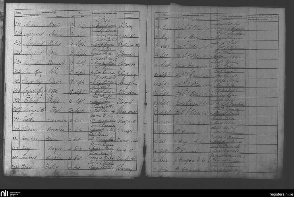 Clonegal; County of Wicklow, Carlow, Wexford; Diocese of Kildare and Leighlin. Baptisms, Aug. 1874 to Nov. 1874