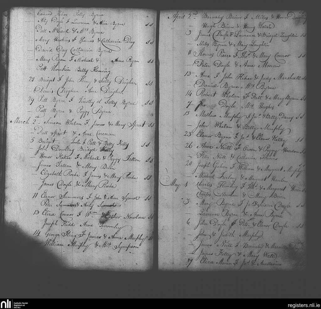 Clonmore; County of Wicklow, Carlow; Diocese of Kildare and Leighlin. Baptisms, Feb. 1820 to May 1820