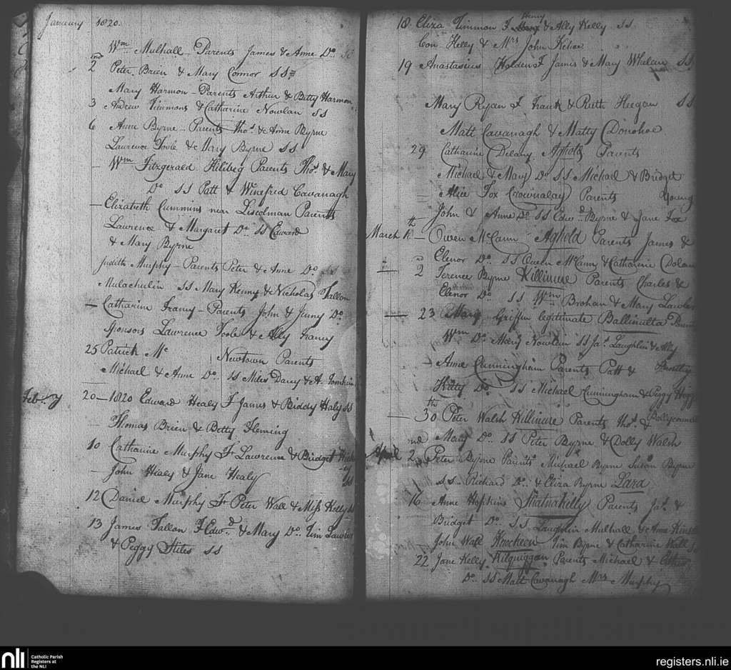 Clonmore; County of Wicklow, Carlow; Diocese of Kildare and Leighlin. Baptisms, Jan. 1820 to Apr. 1820