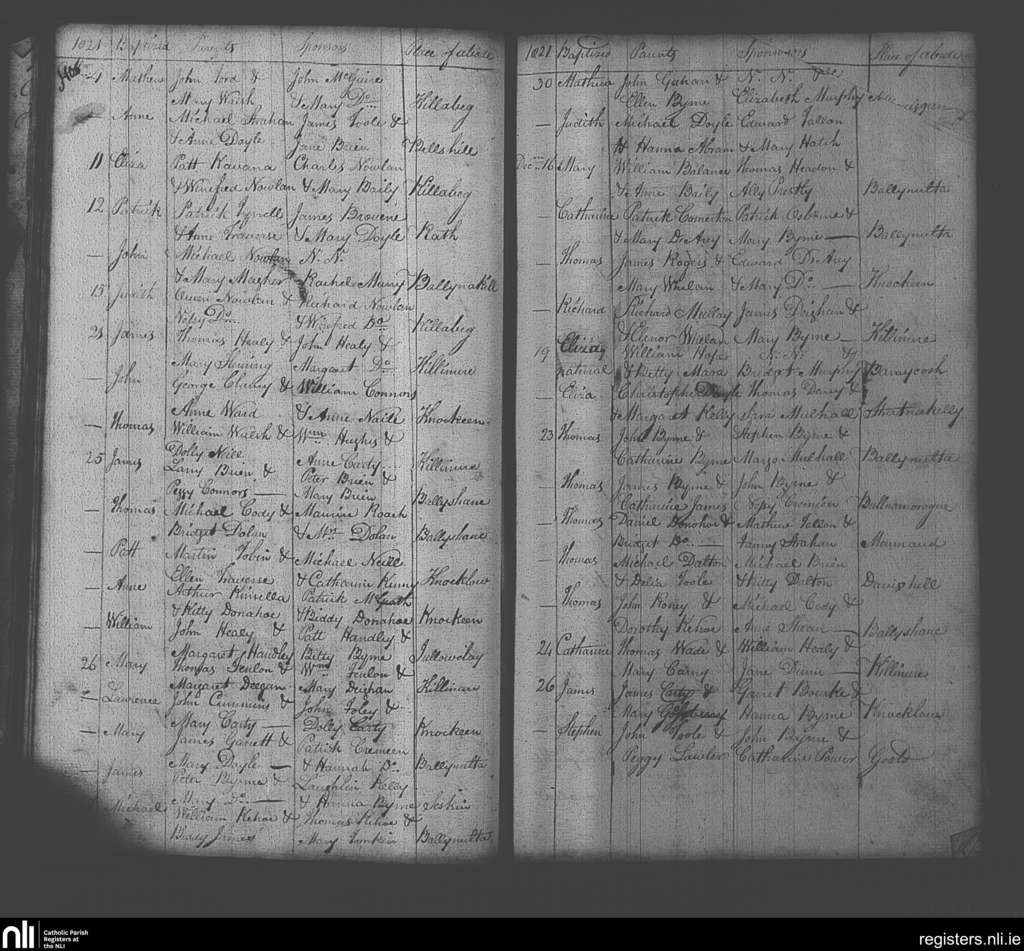 Clonmore; County of Wicklow, Carlow; Diocese of Kildare and Leighlin. Baptisms, Nov. 1821 to Dec. 1821