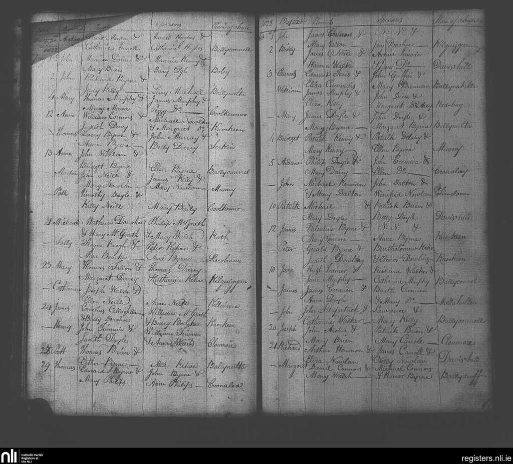 Clonmore; County of Wicklow, Carlow; Diocese of Kildare and Leighlin. Baptisms, Dec. 1821 to Feb. 1822