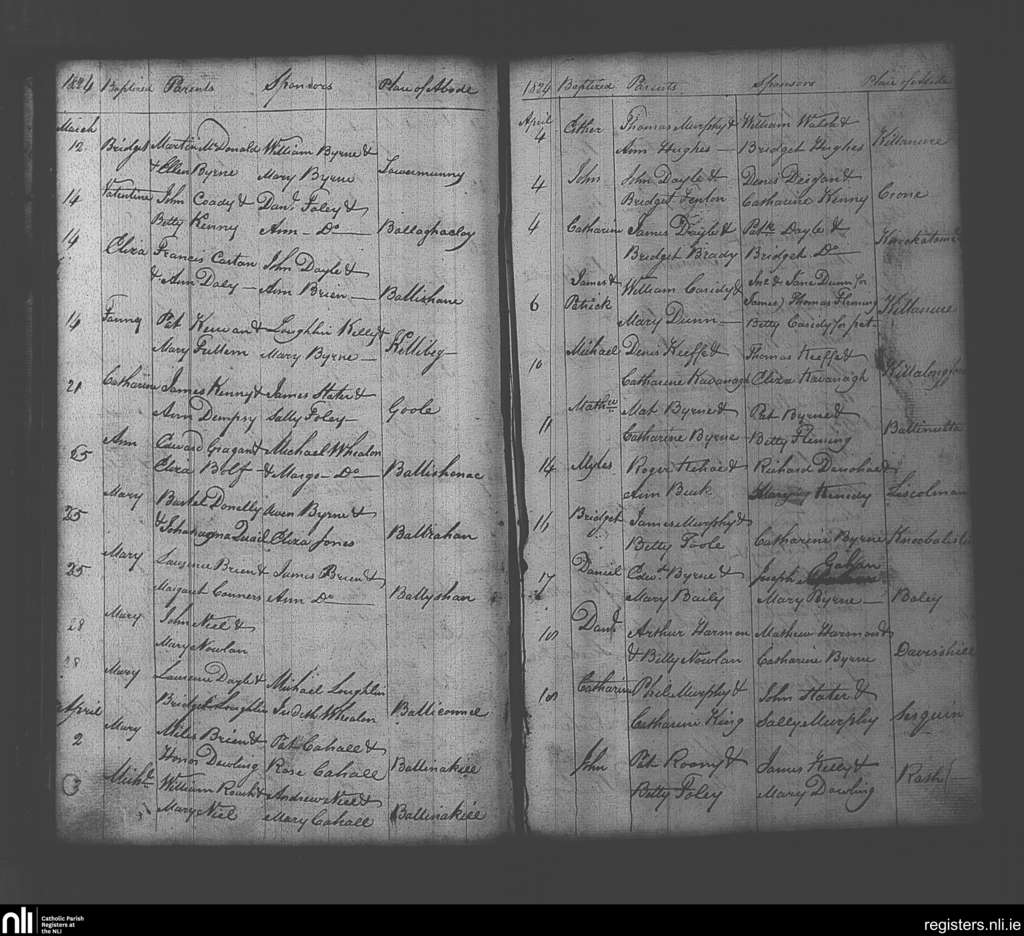 Clonmore; County of Wicklow, Carlow; Diocese of Kildare and Leighlin. Baptisms, Mar. 1824 to Apr. 1824