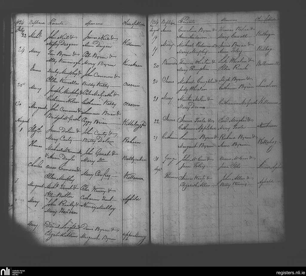 Clonmore; County of Wicklow, Carlow; Diocese of Kildare and Leighlin. Baptisms, July 1824 to Sep. 1824