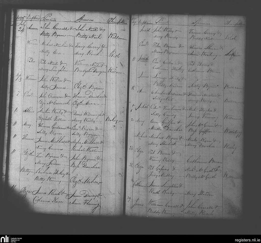 Clonmore; County of Wicklow, Carlow; Diocese of Kildare and Leighlin. Baptisms, July 1825 to Sep. 1825