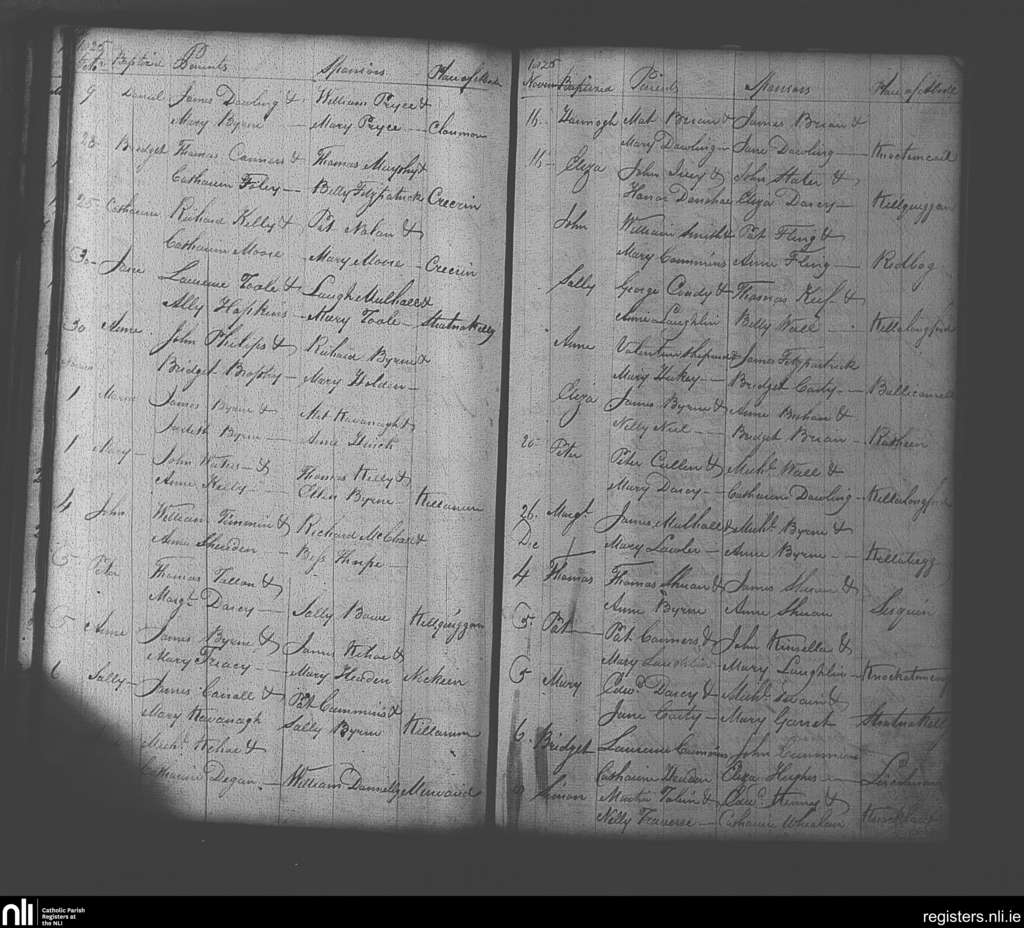 Clonmore; County of Wicklow, Carlow; Diocese of Kildare and Leighlin. Baptisms, Oct. 1825 to Dec. 1825