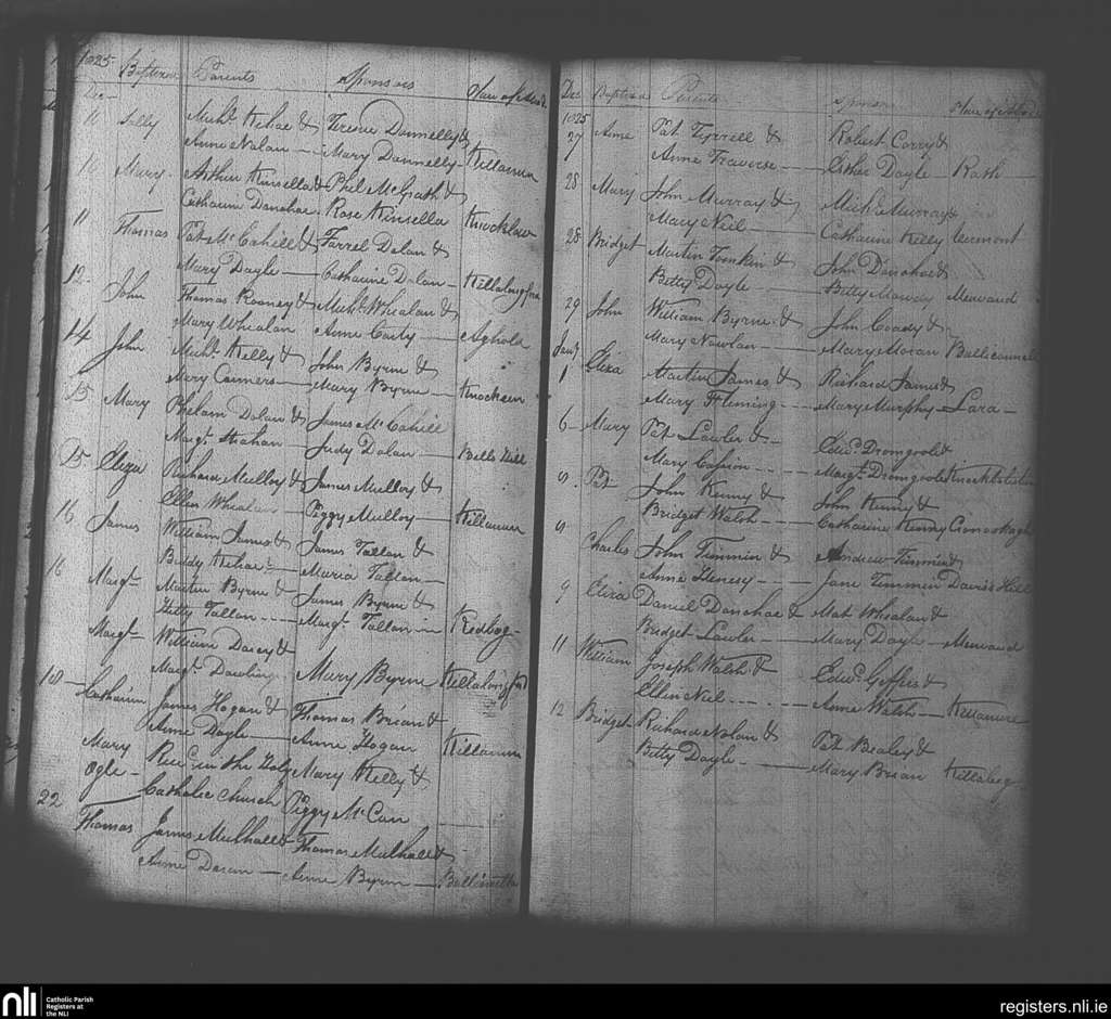 Clonmore; County of Wicklow, Carlow; Diocese of Kildare and Leighlin. Baptisms, Dec. 1825 to Jan. 1826