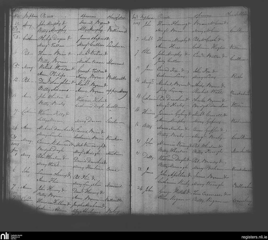 Clonmore; County of Wicklow, Carlow; Diocese of Kildare and Leighlin. Baptisms, Nov. 1826 to Jan. 1827