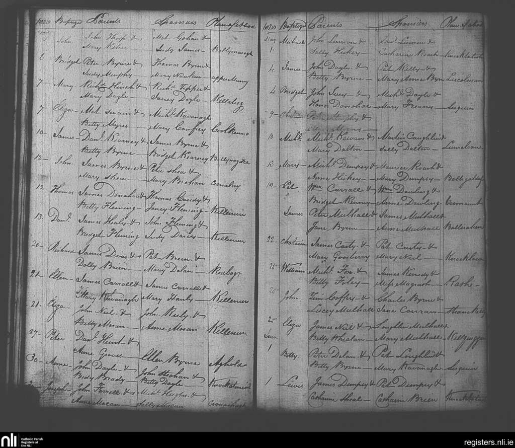Clonmore; County of Wicklow, Carlow; Diocese of Kildare and Leighlin. Baptisms, Apr. 1828 to June 1828
