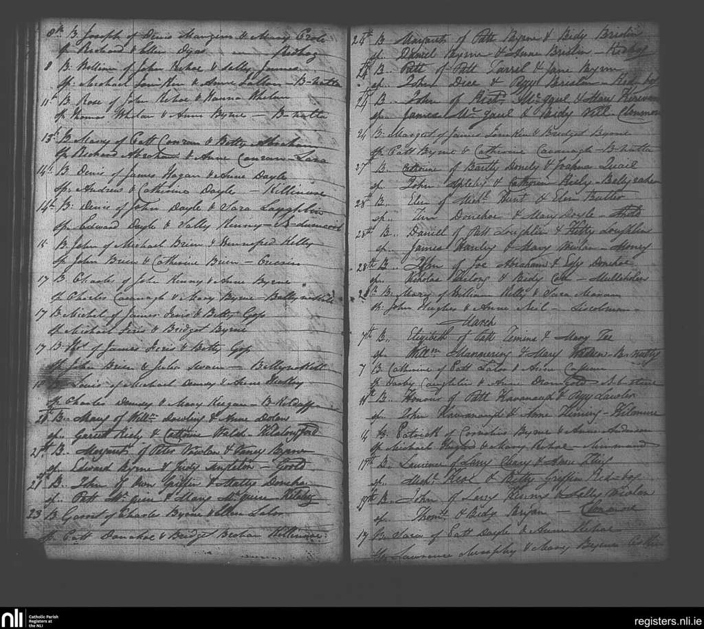 Clonmore; County of Wicklow, Carlow; Diocese of Kildare and Leighlin. Baptisms, Feb. 1830 to Mar. 1830