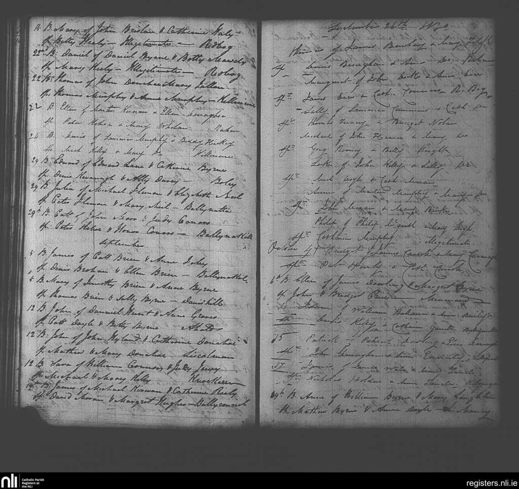Clonmore; County of Wicklow, Carlow; Diocese of Kildare and Leighlin. Baptisms, Aug. 1830 to Oct. 1830
