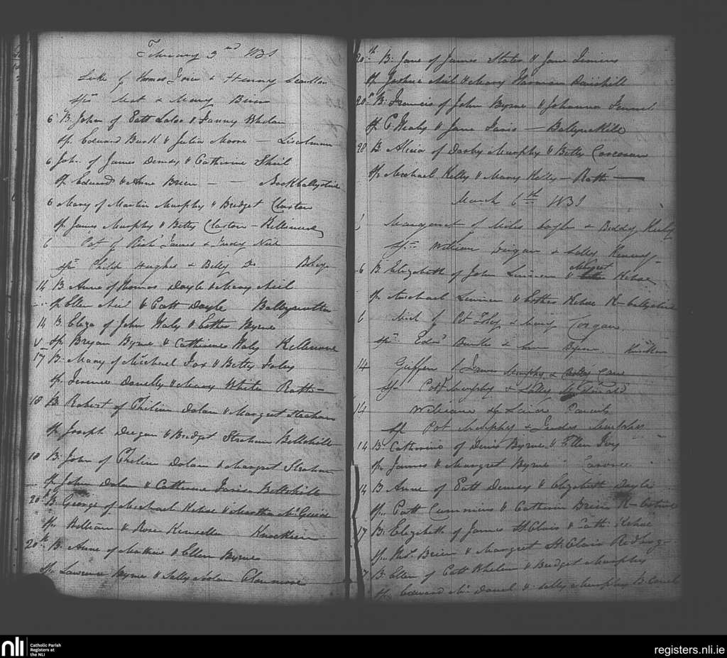Clonmore; County of Wicklow, Carlow; Diocese of Kildare and Leighlin. Baptisms, Feb. 1831 to Mar. 1831