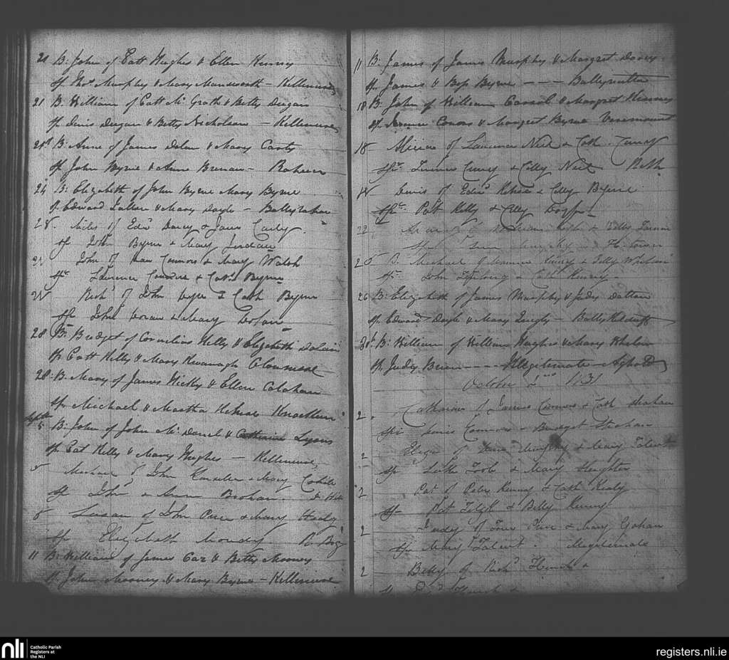 Clonmore; County of Wicklow, Carlow; Diocese of Kildare and Leighlin. Baptisms, Aug. 1831 to Oct. 1831