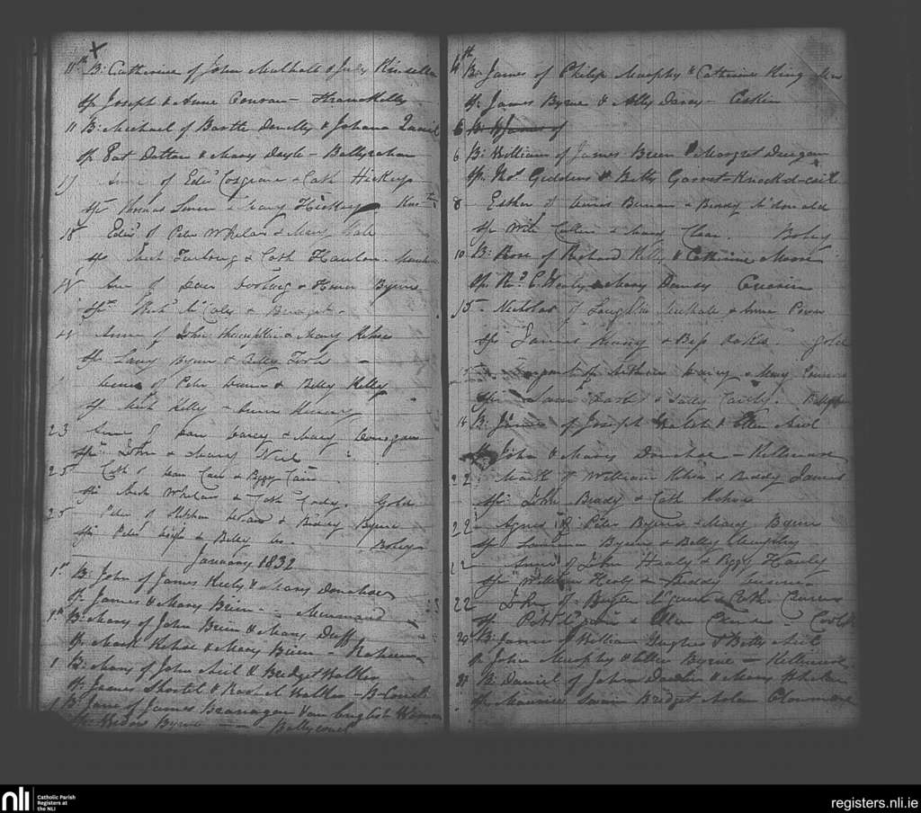 Clonmore; County of Wicklow, Carlow; Diocese of Kildare and Leighlin. Baptisms, Dec. 1831 to Jan. 1832