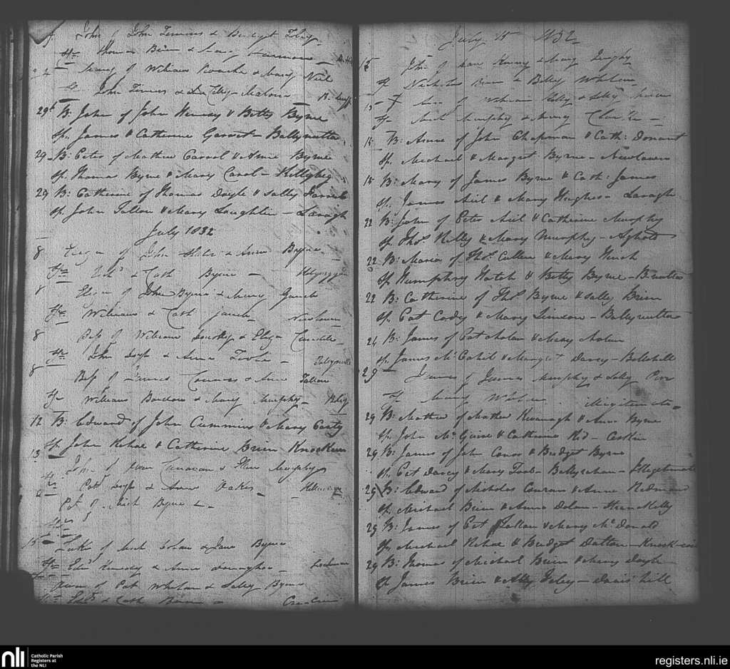 Clonmore; County of Wicklow, Carlow; Diocese of Kildare and Leighlin. Baptisms, June 1832 to July 1832