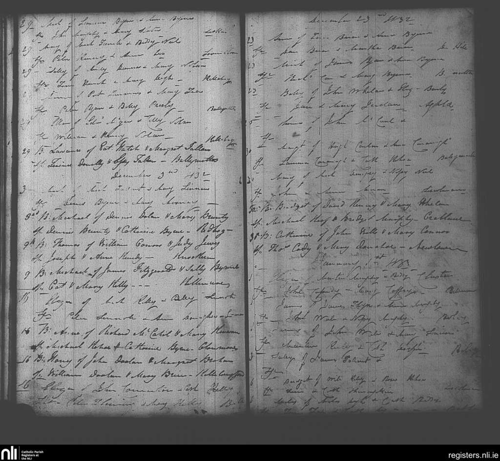 Clonmore; County of Wicklow, Carlow; Diocese of Kildare and Leighlin. Baptisms, Nov. 1832 to Jan. 1833
