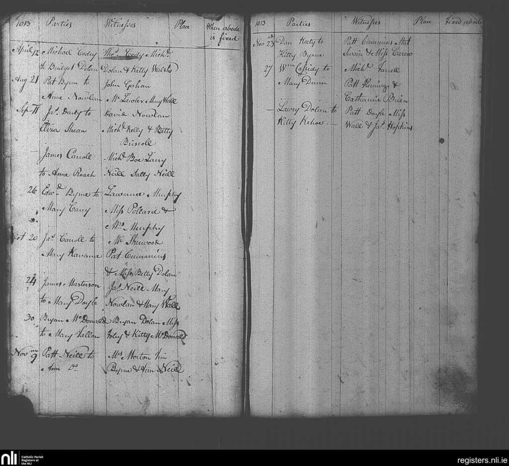 Clonmore; County of Wicklow, Carlow; Diocese of Kildare and Leighlin. Marriages, Apr. 1813 to Nov. 1813