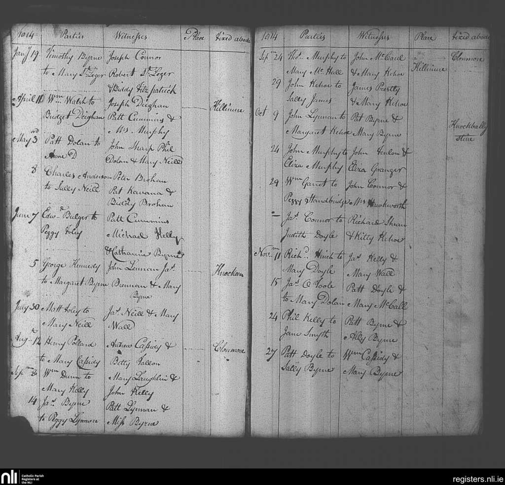 Clonmore; County of Wicklow, Carlow; Diocese of Kildare and Leighlin. Marriages, Jan. 1814 to Nov. 1814