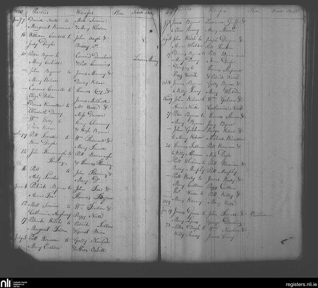 Clonmore; County of Wicklow, Carlow; Diocese of Kildare and Leighlin. Marriages, Jan. 1818 to Jan. 1819