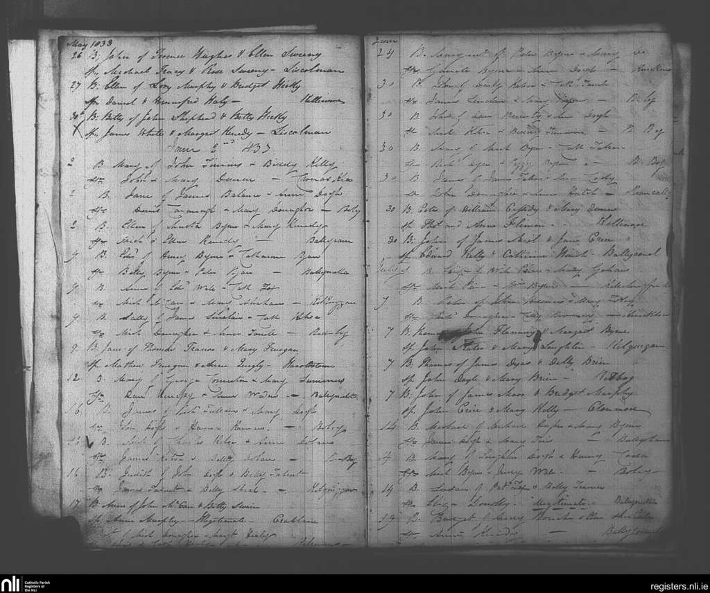 Clonmore; County of Carlow, Wicklow; Diocese of Kildare and Leighlin. Baptisms, May 1833 to July 1833