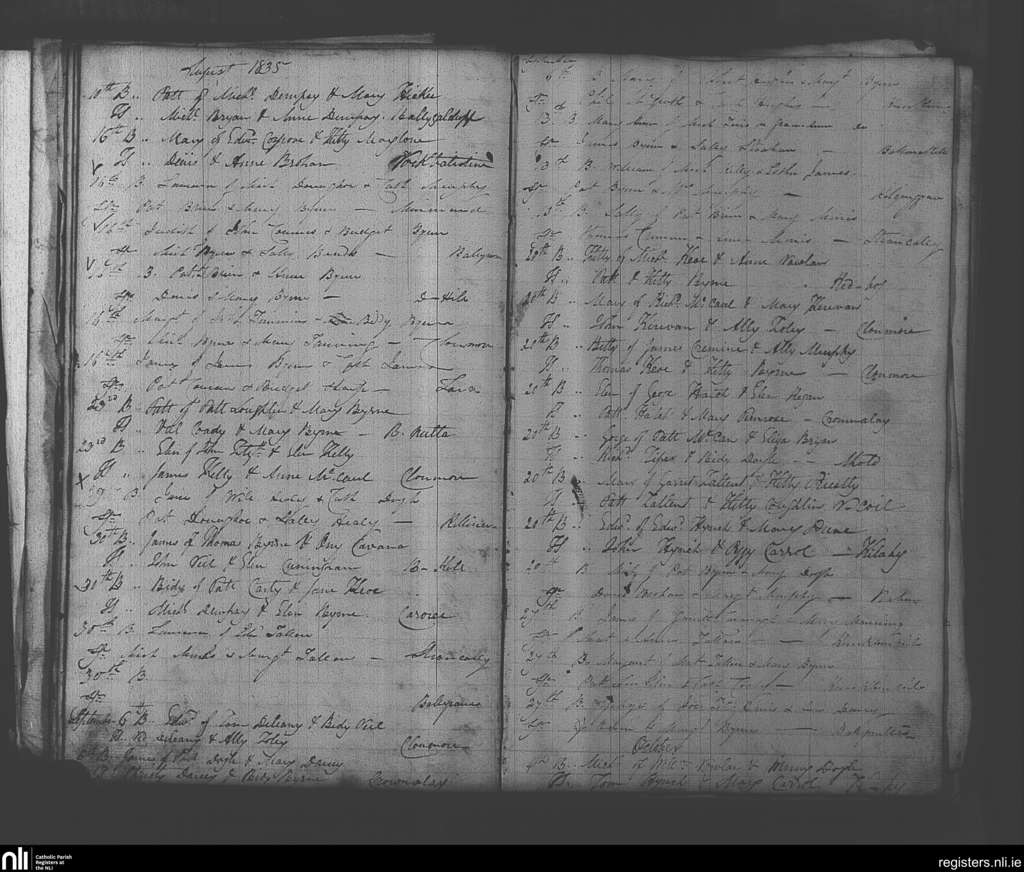 Clonmore; County of Carlow, Wicklow; Diocese of Kildare and Leighlin. Baptisms, Aug. 1835 to Oct. 1835