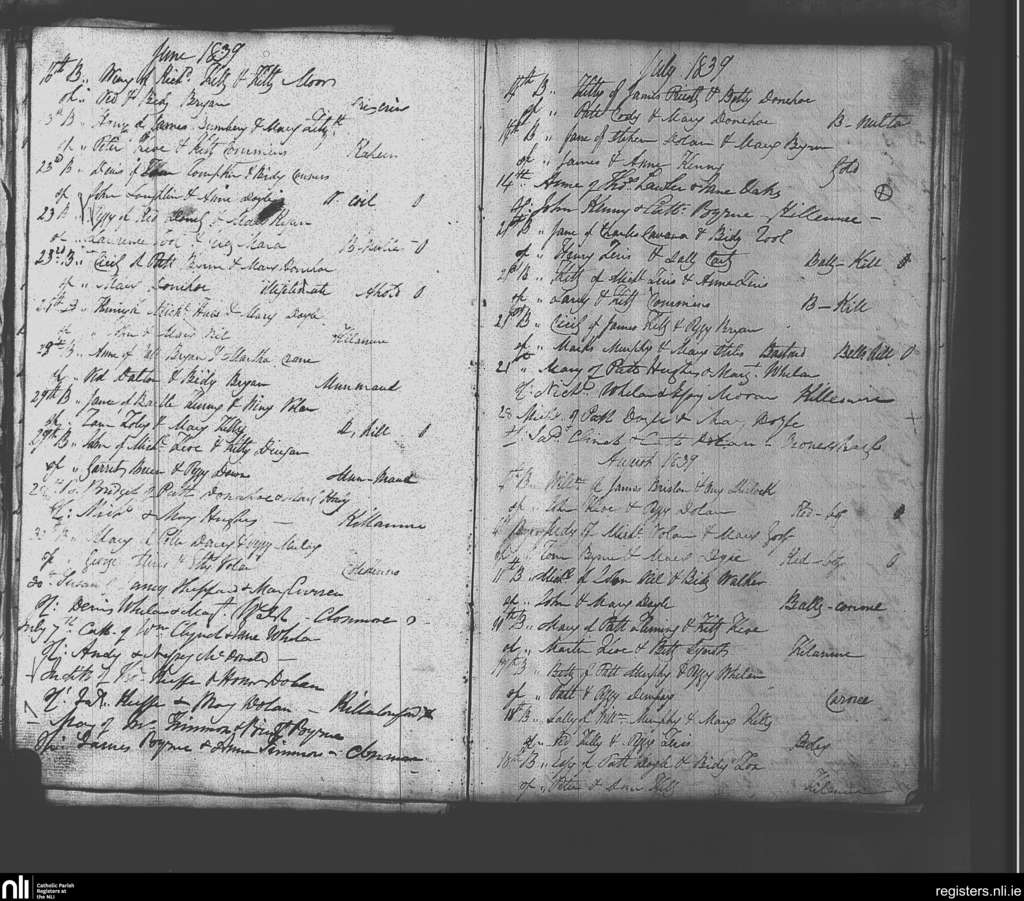 Clonmore; County of Carlow, Wicklow; Diocese of Kildare and Leighlin. Baptisms, June 1839 to Aug. 1839