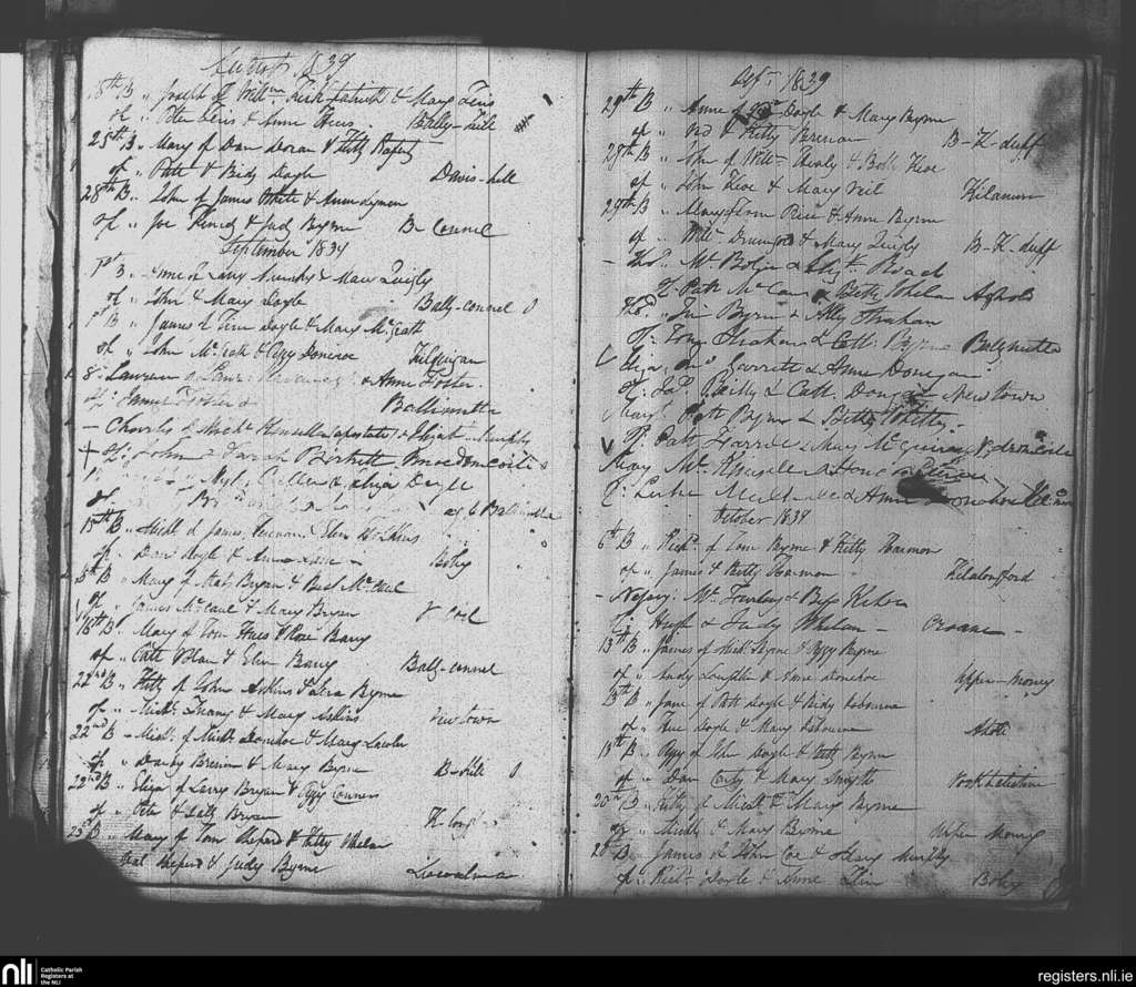 Clonmore; County of Carlow, Wicklow; Diocese of Kildare and Leighlin. Baptisms, Aug. 1839 to Oct. 1839
