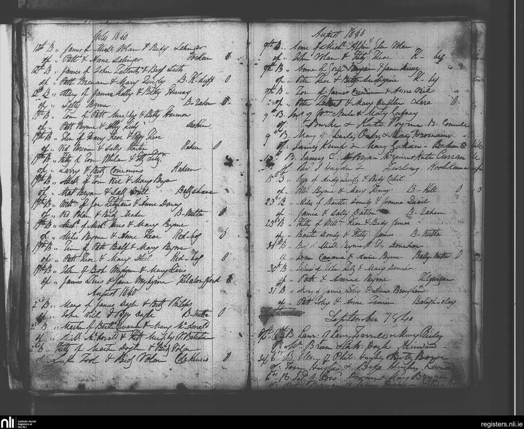 Clonmore; County of Carlow, Wicklow; Diocese of Kildare and Leighlin. Baptisms, July 1840 to Sep. 1840