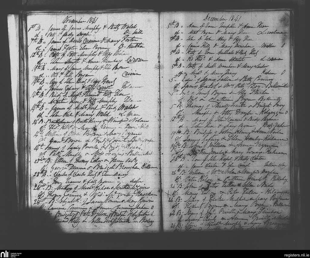 Clonmore; County of Carlow, Wicklow; Diocese of Kildare and Leighlin. Baptisms, Nov. 1841 to Dec. 1841