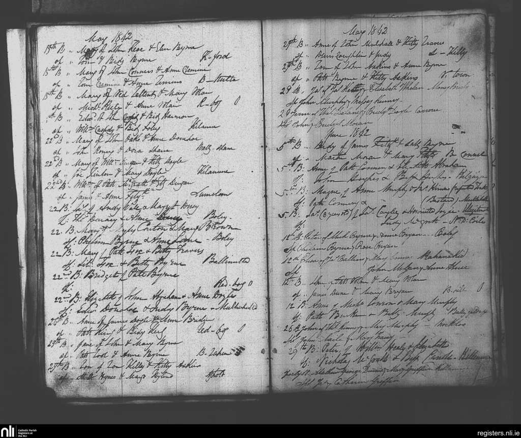 Clonmore; County of Carlow, Wicklow; Diocese of Kildare and Leighlin. Baptisms, May 1842 to July 1842