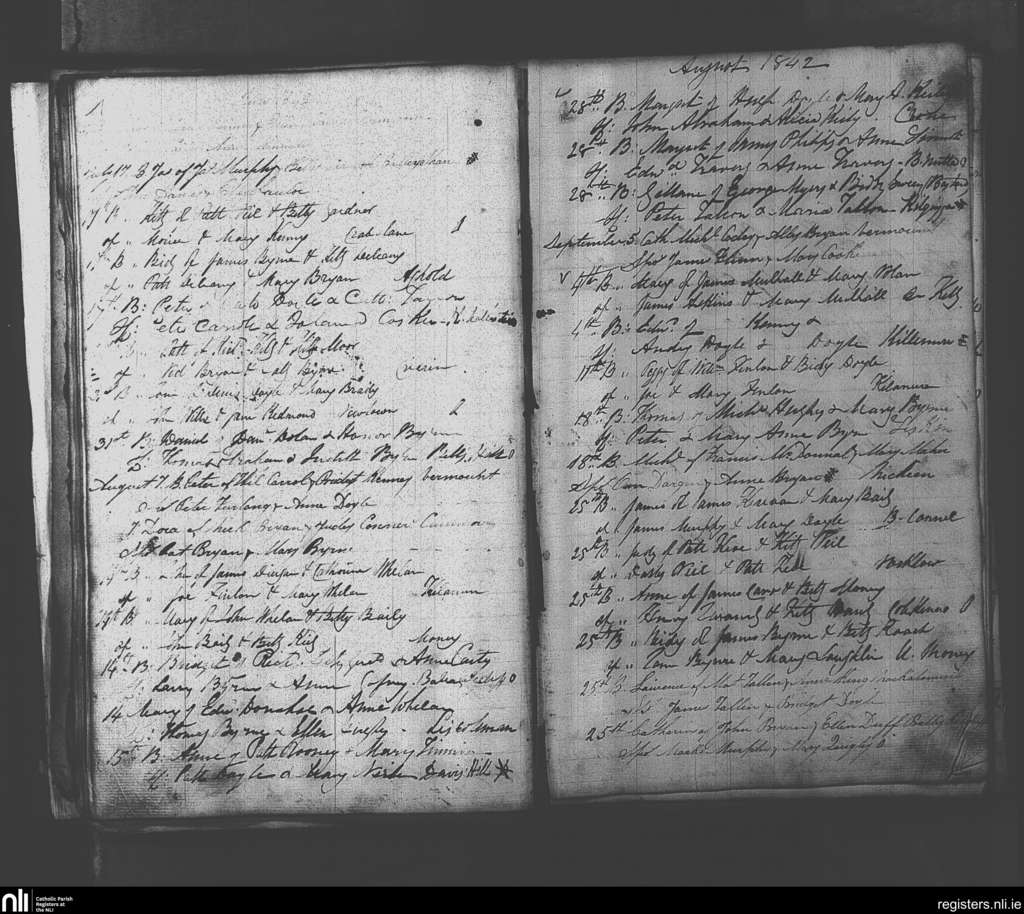 Clonmore; County of Carlow, Wicklow; Diocese of Kildare and Leighlin. Baptisms, July 1842 to Sep. 1842