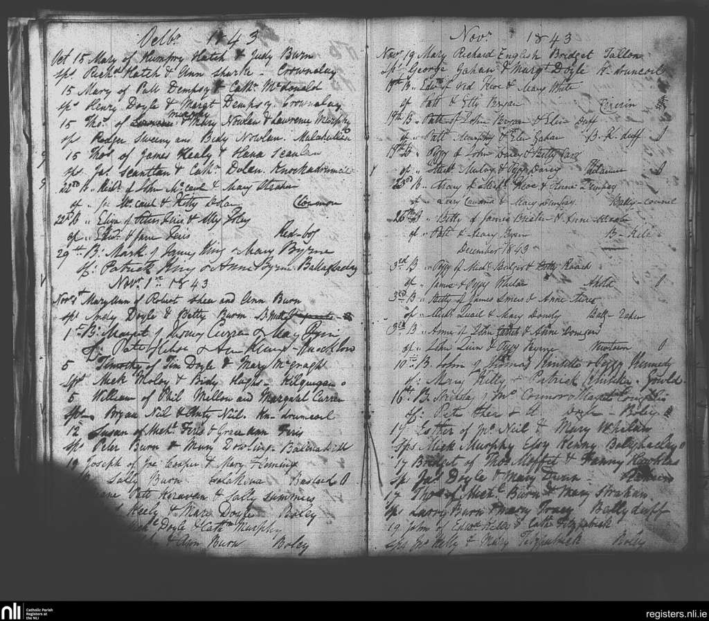 Clonmore; County of Carlow, Wicklow; Diocese of Kildare and Leighlin. Baptisms, Oct. 1843 to Dec. 1843