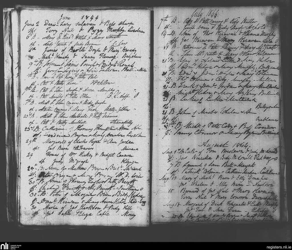 Clonmore; County of Carlow, Wicklow; Diocese of Kildare and Leighlin. Baptisms, June 1844 to Aug. 1844